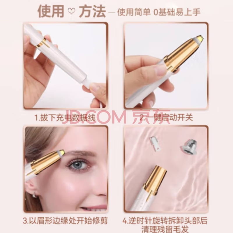商品相册:遇上佳人 电动修眉刀修眉仪刮毛剃眉笔定型修剪器充电款男女自动usb玫瑰金第