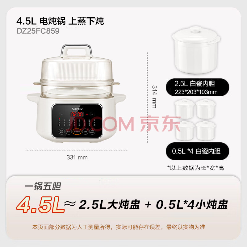 商品相册:苏泊尔(SUPOR)电炖盅 电炖锅 隔水炖煮 家用煮粥煲汤锅燕窝炖盅 白瓷内胆炖汤锅上蒸下炖DZ25FC859 2.5L多功能锅第