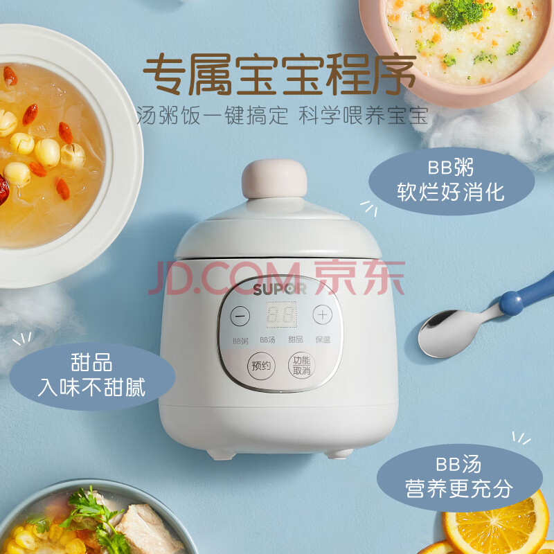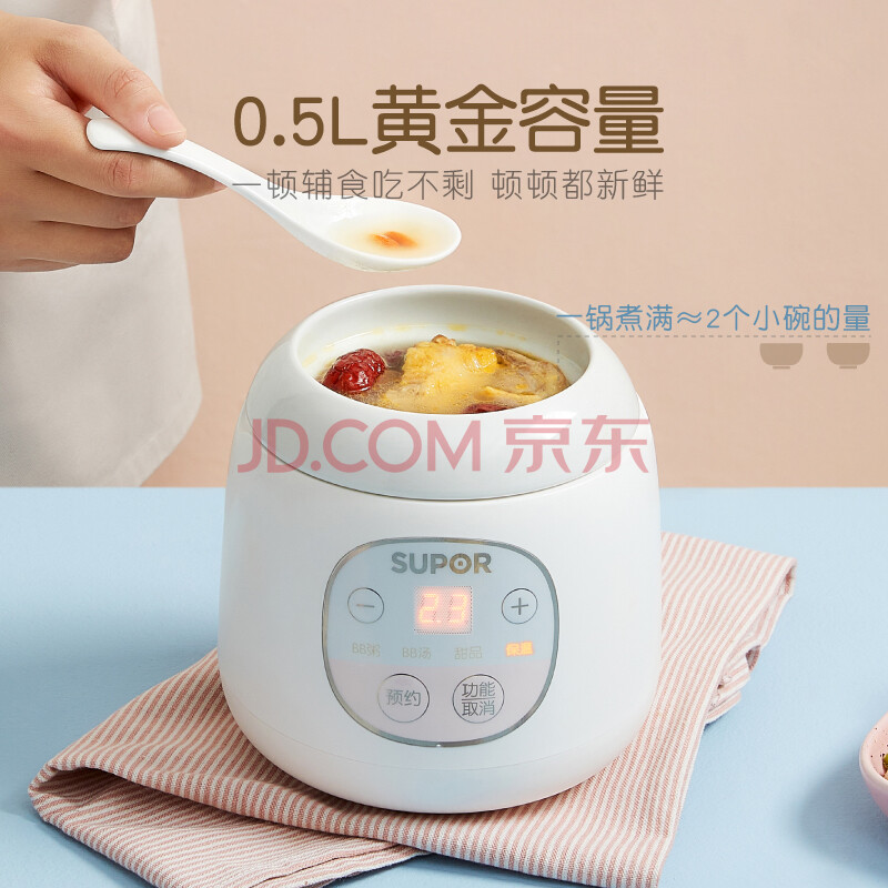 商品相册:苏泊尔(SUPOR)辅食锅婴儿BB煲宝宝分月龄炖锅煮粥锅 辅食料理机0.5L DG05CQ03第