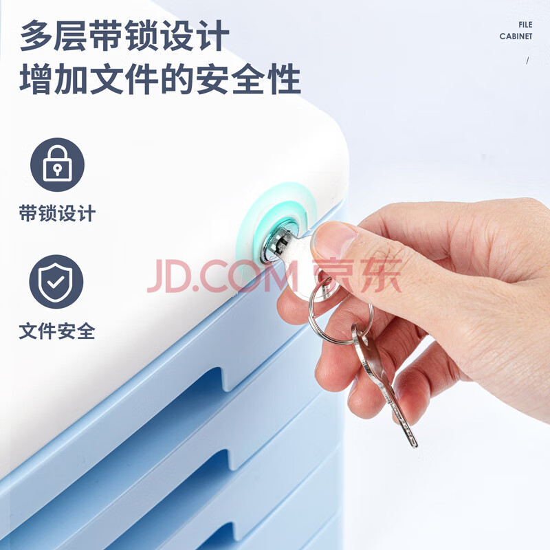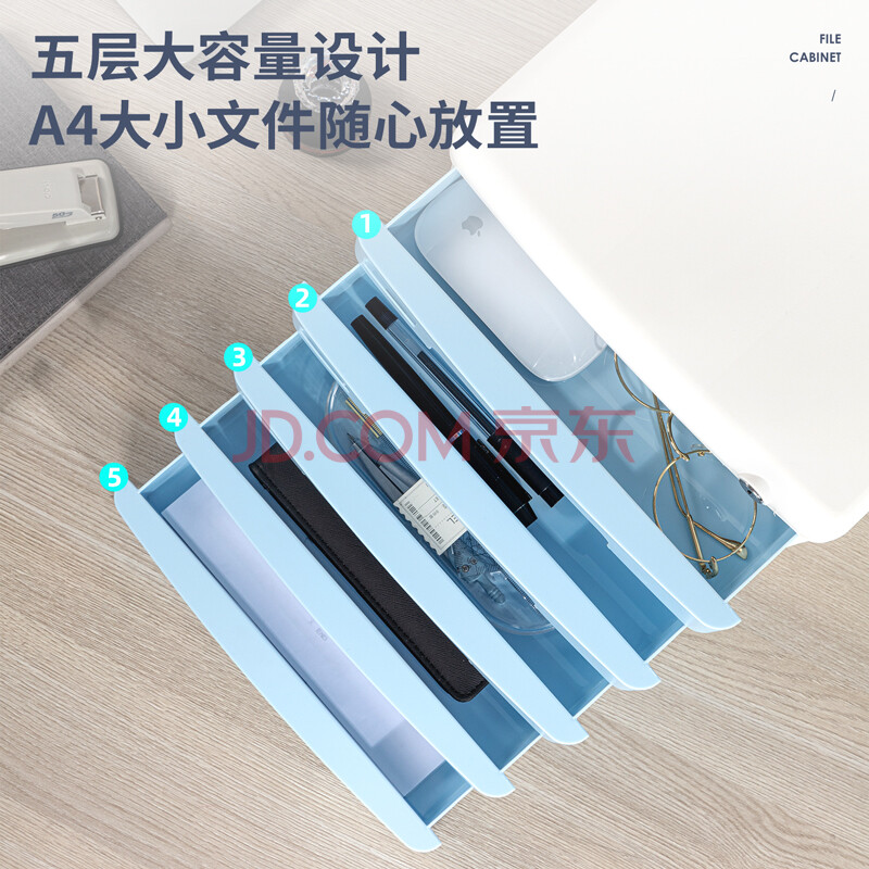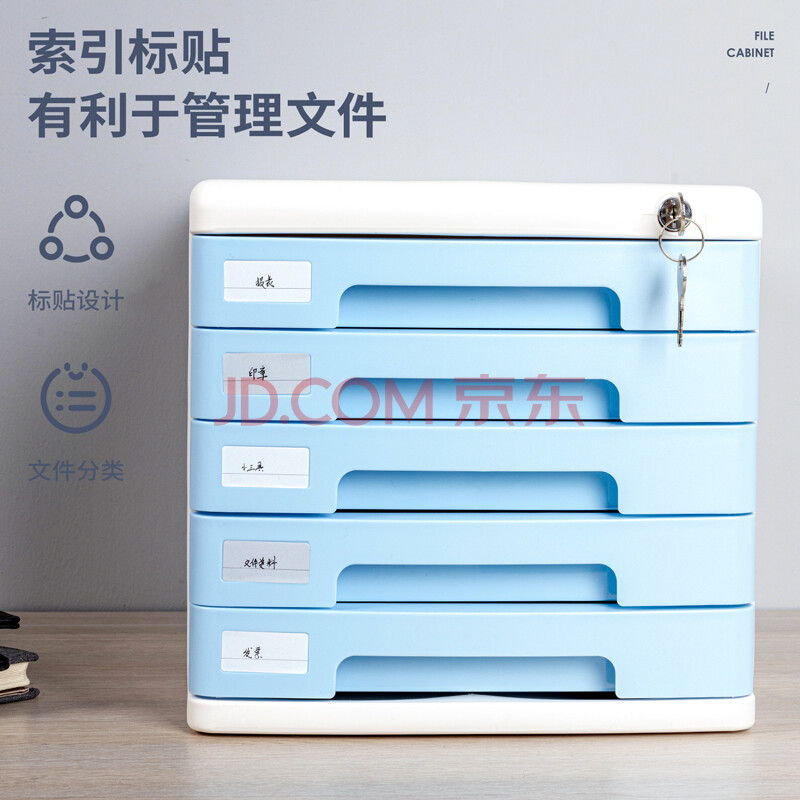 商品相册:得力(deli)9779五层带锁文件柜(浅灰)1只手拉桌面文件柜 带索引标签抽屉资料收纳柜学科试卷分类收纳第
