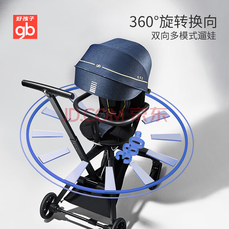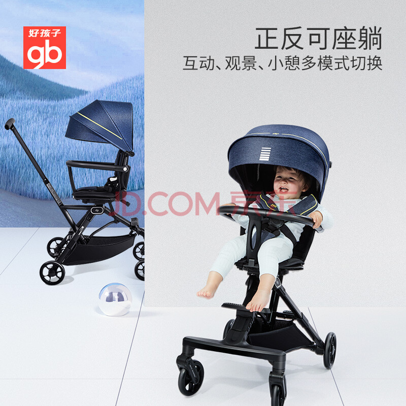 商品相册:好孩子(gb)360°双向高景观溜娃婴儿推车可坐可躺可登机遛娃神器D2047 藏青第