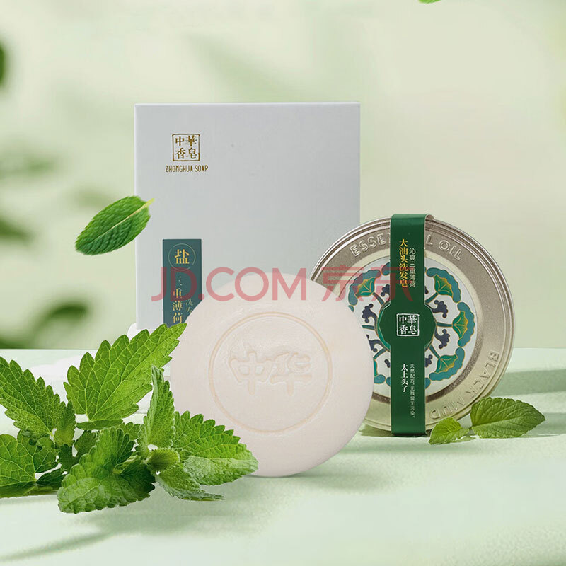 商品相册:中华香皂天然精油三重薄荷洗发皂150g 天然成分 洗脸沐浴皂第