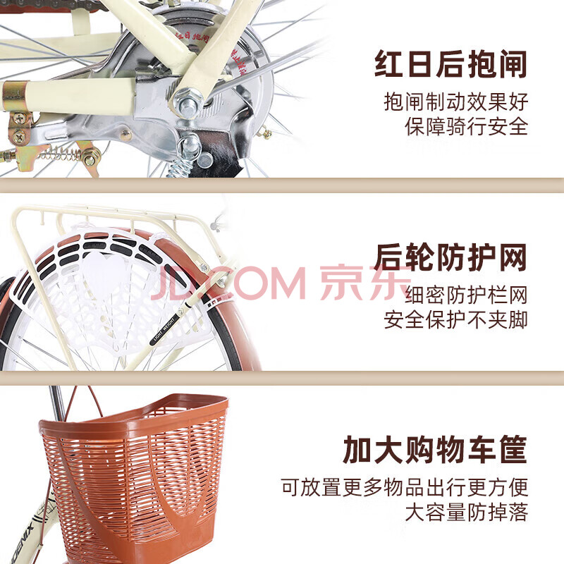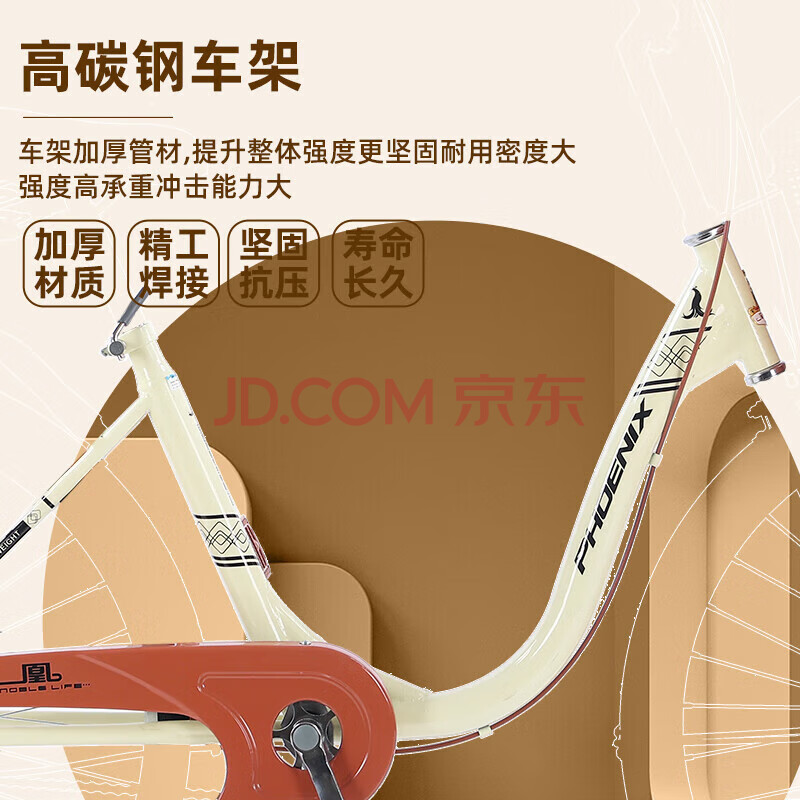 商品相册:凤凰(Phoenix)自行车千鹤女式轻便成人城市学生儿童通勤车 24英寸单速 珍珠白第1张/共7