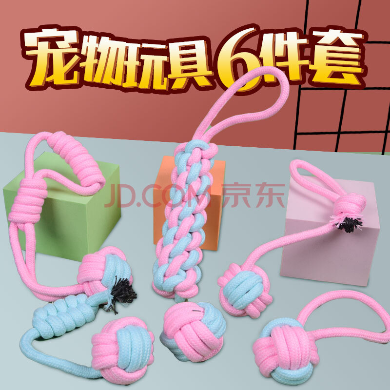 商品相册:波奇多 狗狗玩具棉绳六件套 磨牙耐咬绳结编织拔河狗咬拉扯胡萝卜狗玩具第