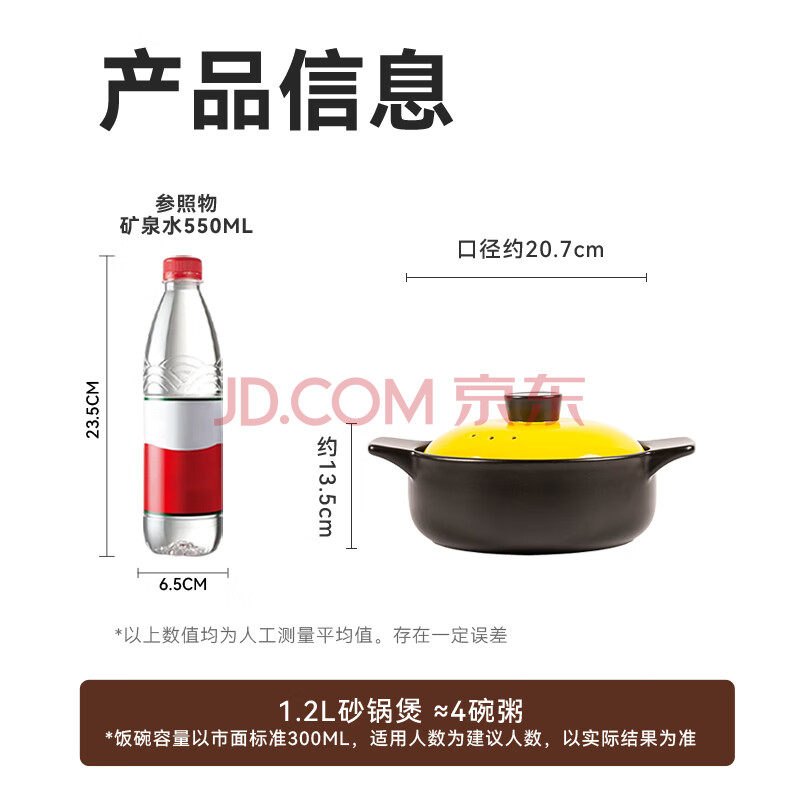 商品相册:京东京造进口锂辉石陶瓷煲汤煮粥焖饭砂锅陶瓷家用养生汤锅燃气灶通用第