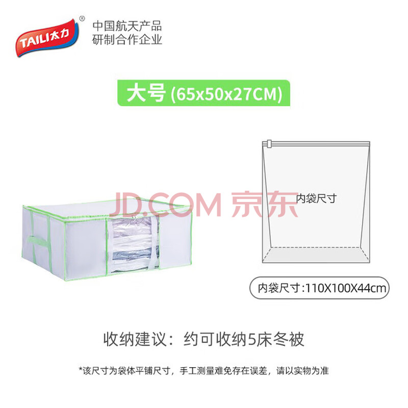 商品相册:太力真空压缩袋收纳箱收纳袋布艺衣服被子压缩袋可折叠整理袋 87L大号第