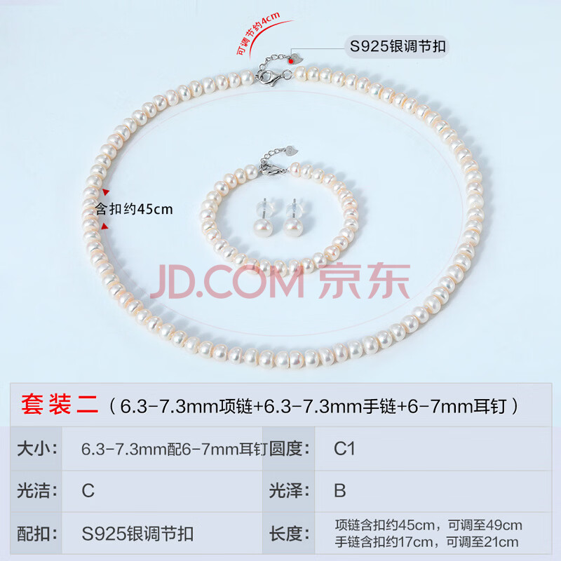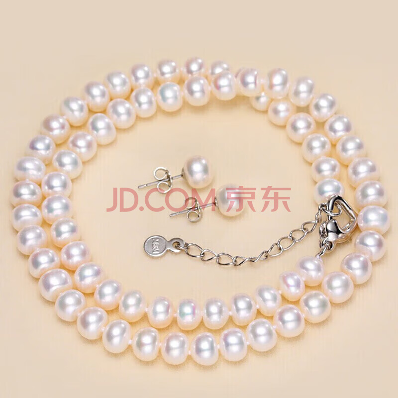 商品相册:黛米S925银无核馒头圆6.3-7.3mm淡水珍珠项链耳钉套装生日礼物送婆婆第