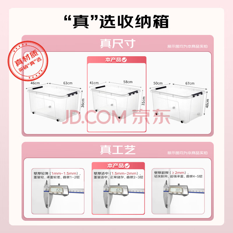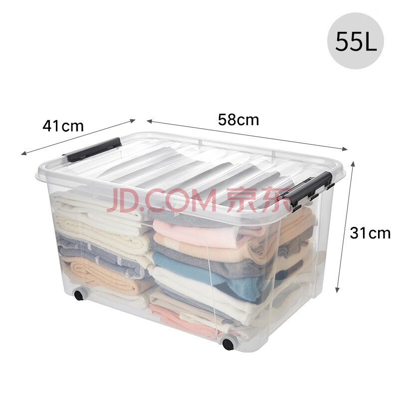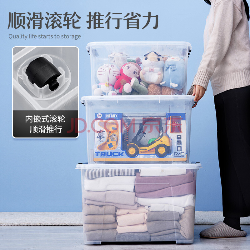 商品相册:JEKO&JEKO透明衣物收纳箱加大号玩具整理箱搬家箱打包箱被子储物箱55L3只装第