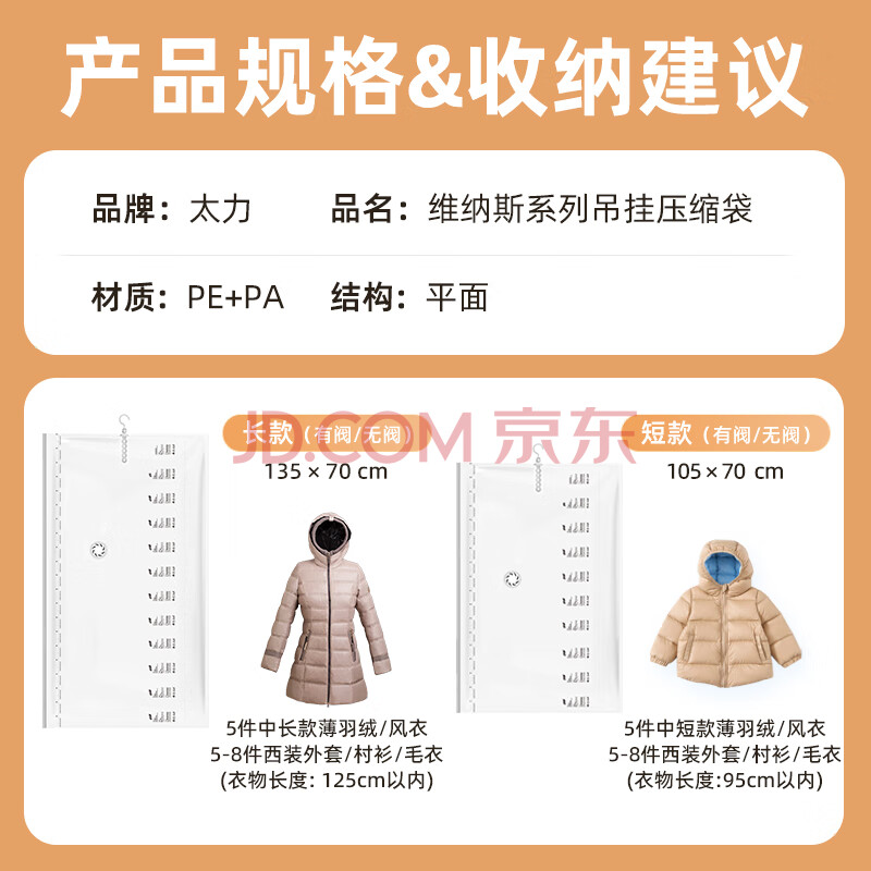 商品相册:太力免抽气挂式压缩袋羽绒服收纳袋大衣西装防尘罩2件套第