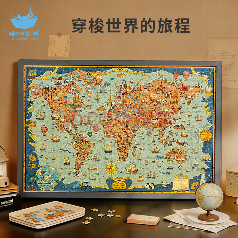 商品相册:猫的天空之城拼图成年人拼图1000片穿梭世界的旅程世界地图拼图高级女生节礼物第