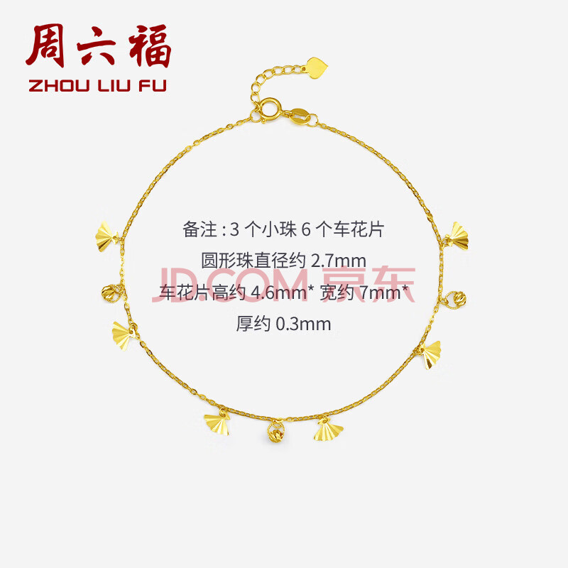 商品相册:周六福 珠宝女款花瓣脚饰黄18K金脚链 KH080885 21+2cm生日礼物第