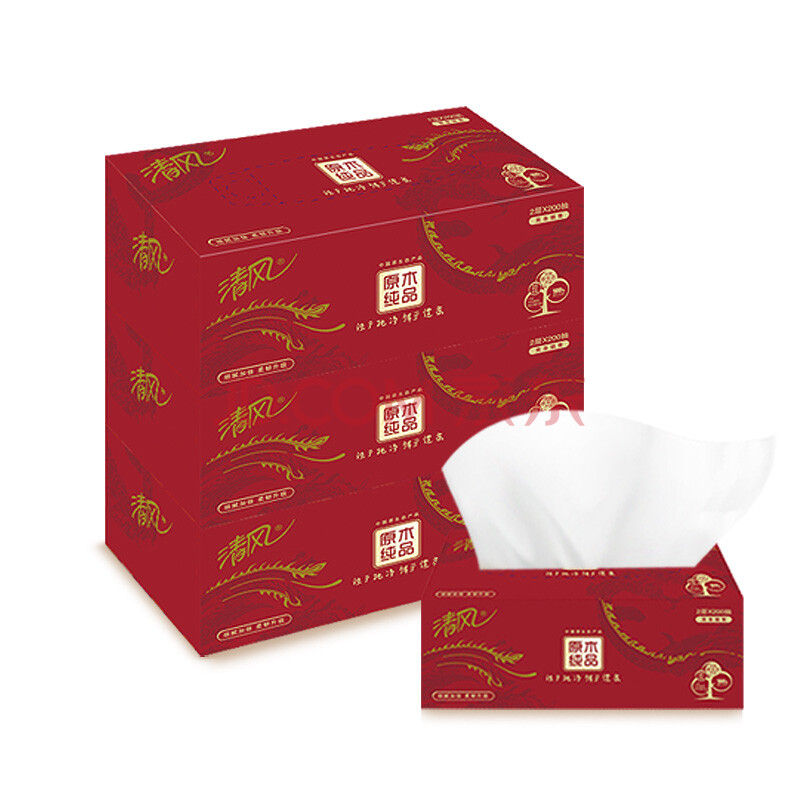 商品相册:清风抽纸 擦手纸2层200抽*36盒 商用批发 盒装整箱酒店 商务专用纸巾第