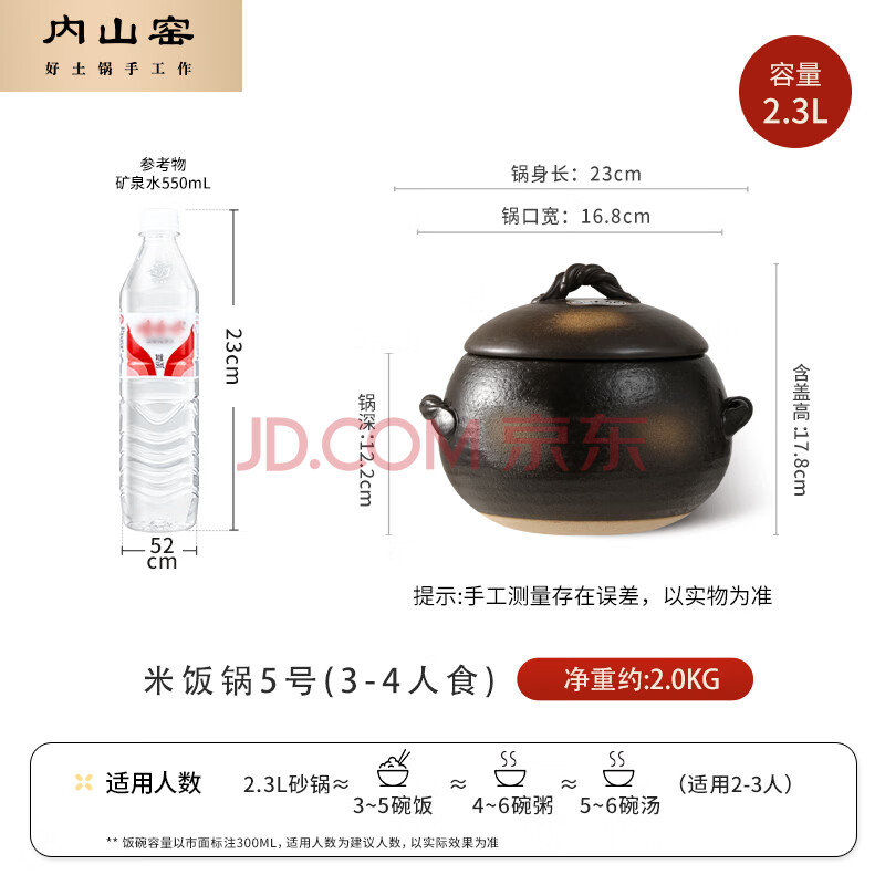 商品相册:内山窯日本进口家用砂锅煲汤锅耐高温不开裂煲仔饭沙锅炖汤瓦煲5合2.4L 第
