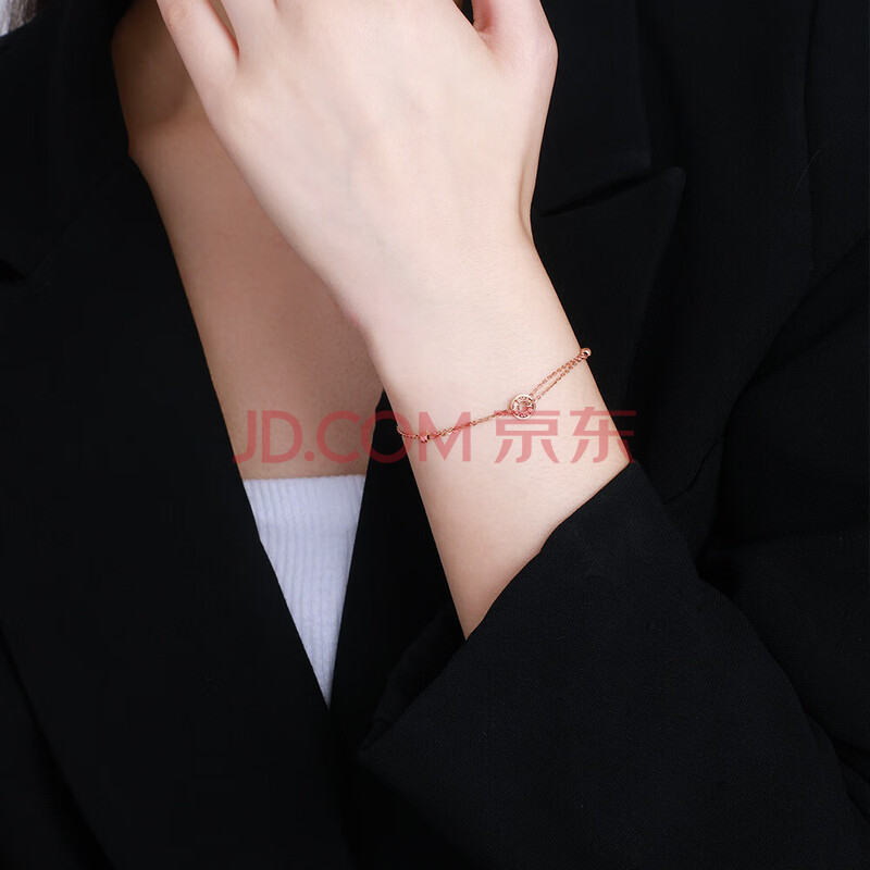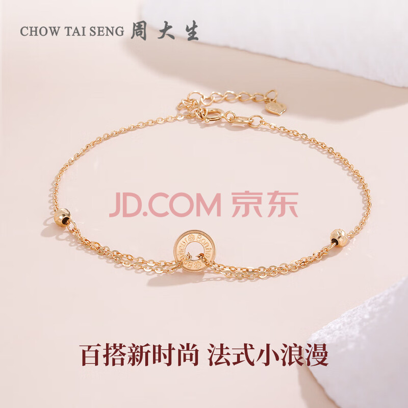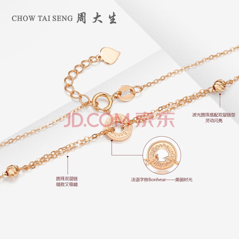 商品相册:周大生【生日礼物】18K金手链玫瑰金幸运法语送女生 约1.3g第