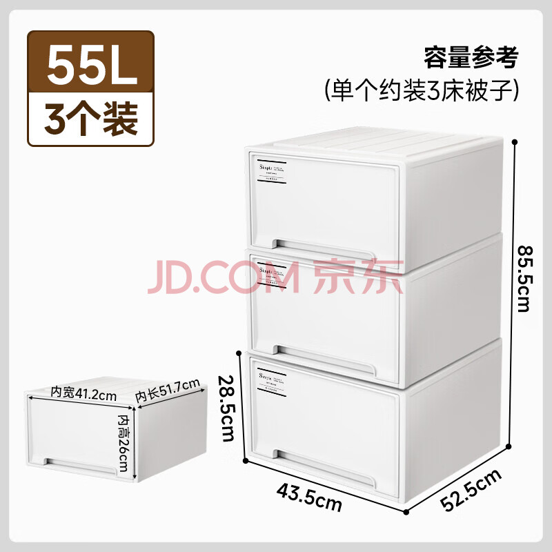 商品相册:百草园收纳箱抽屉式收纳柜衣柜收纳盒52.5*43.5*28.5cm3个白第