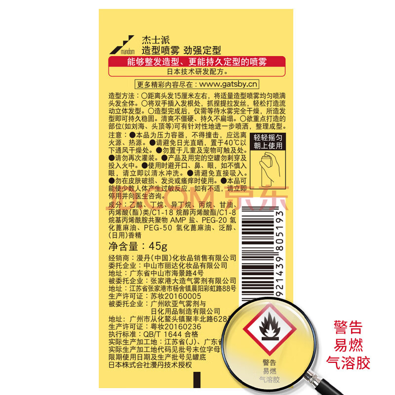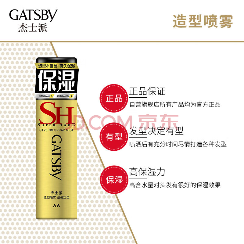 商品相册:杰士派(GATSBY)造型喷雾 劲强定型45g 男士保湿喷雾 新老包装随机发货第