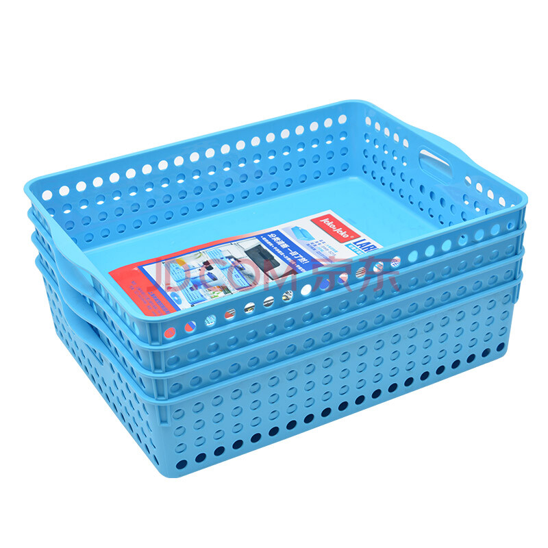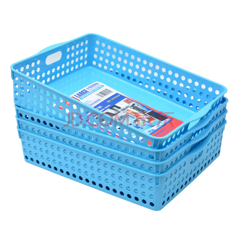 商品相册:JEKO&JEKO塑料收纳筐浴室置物架玩具办公室文件收纳篮 大号蓝色 4只装第