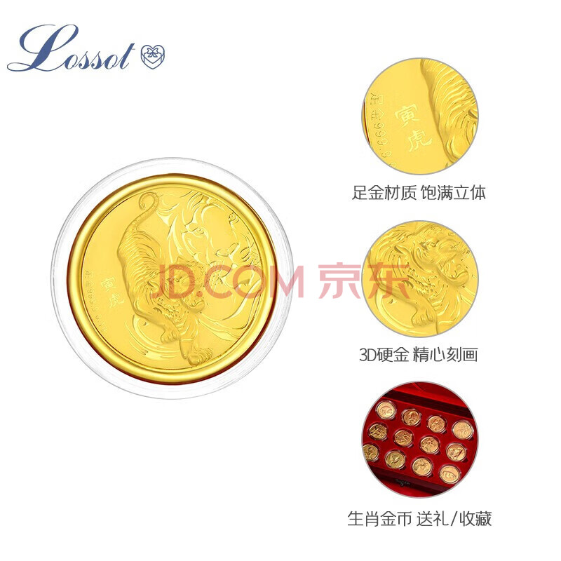 商品相册:Lossot足金十二生肖龙金章黄金压岁钱红包利是封生肖金片新年贺岁第