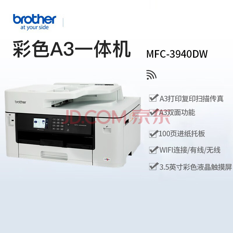 商品相册:兄弟(brother) MFC-J3940DW 彩色喷墨A3打印机 一体机打印复印扫传真A4无线办公第