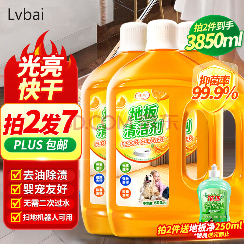 商品相册:Lvbai地板清洁剂瓷砖清洁剂拖地扫地机器人洗地机抑菌清洗剂液3瓶第