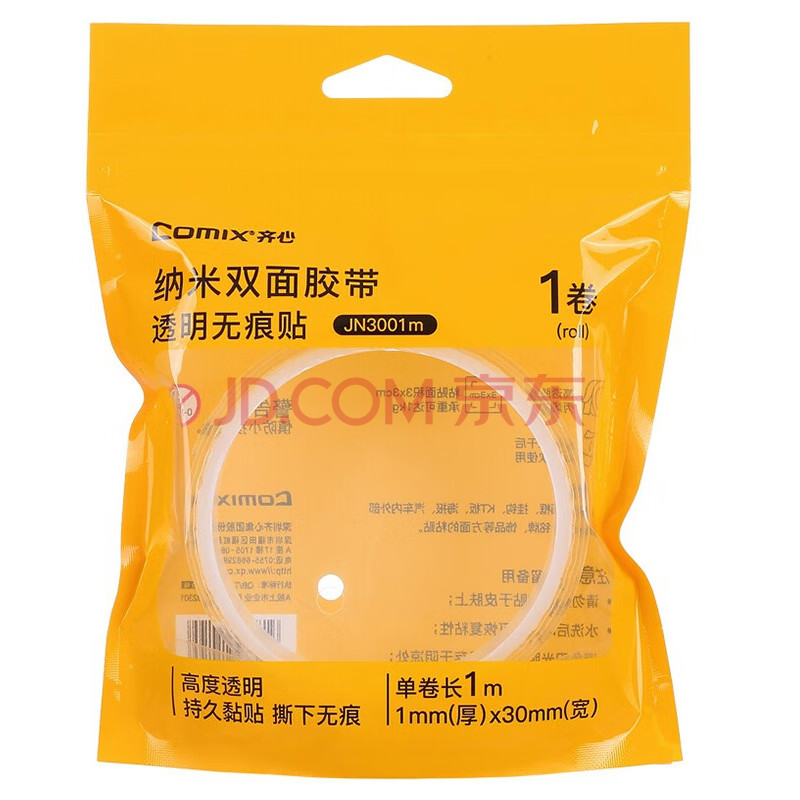商品相册:齐心(COMIX)纳米双面胶带 防风贴窗户胶带不留痕强力胶带 透明防水 宽3cm*长1m*厚1mm 1卷 JN3001m第1张/共5