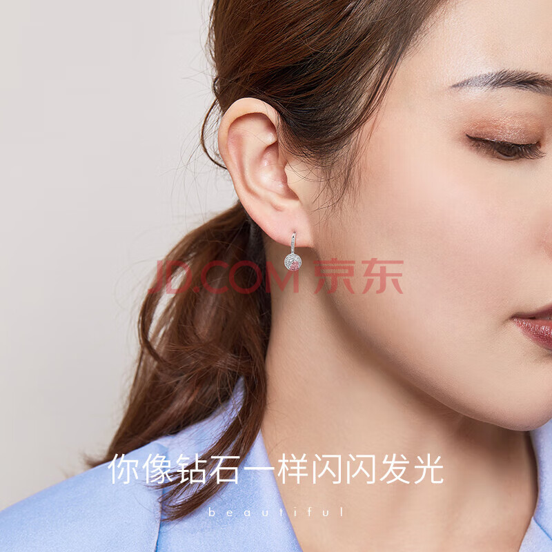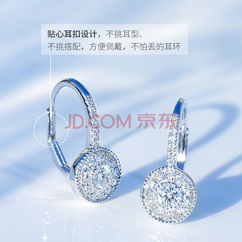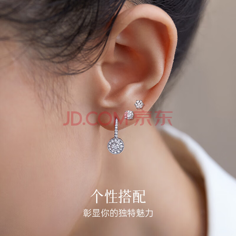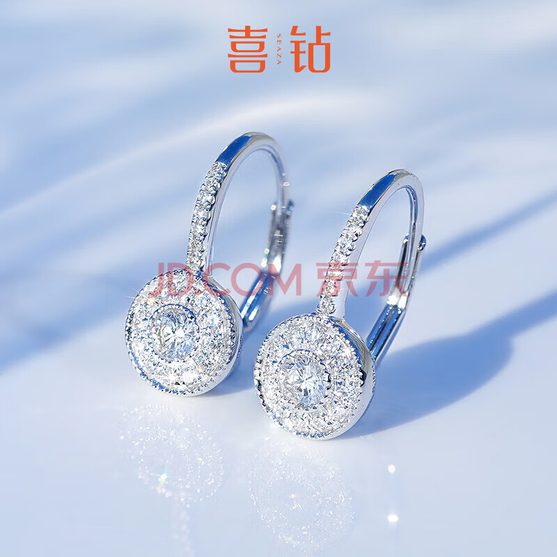 商品相册:喜钻生日礼物白18K金钻石耳饰女款钻石耳环钻石耳坠送女友送老婆第