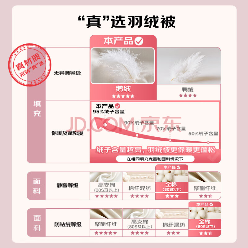 商品相册:Downia 全棉 95%白鹅绒羽绒被芯 春秋被子 填充量390g 200*230cm第