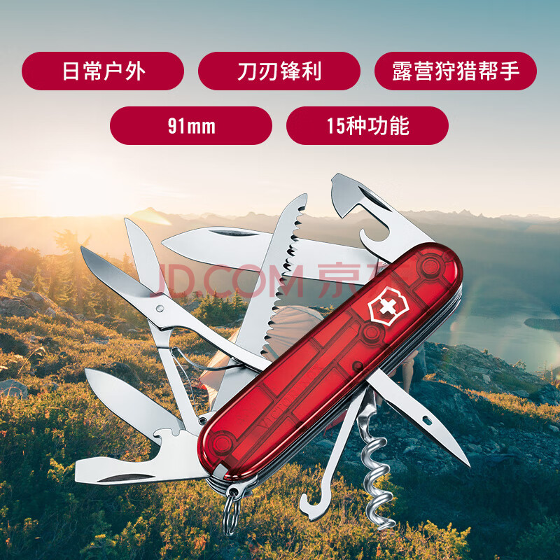 商品相册:维氏瑞士军刀都市猎人91mm户外刀具折叠刀防身小刀1.3713.T透明红第