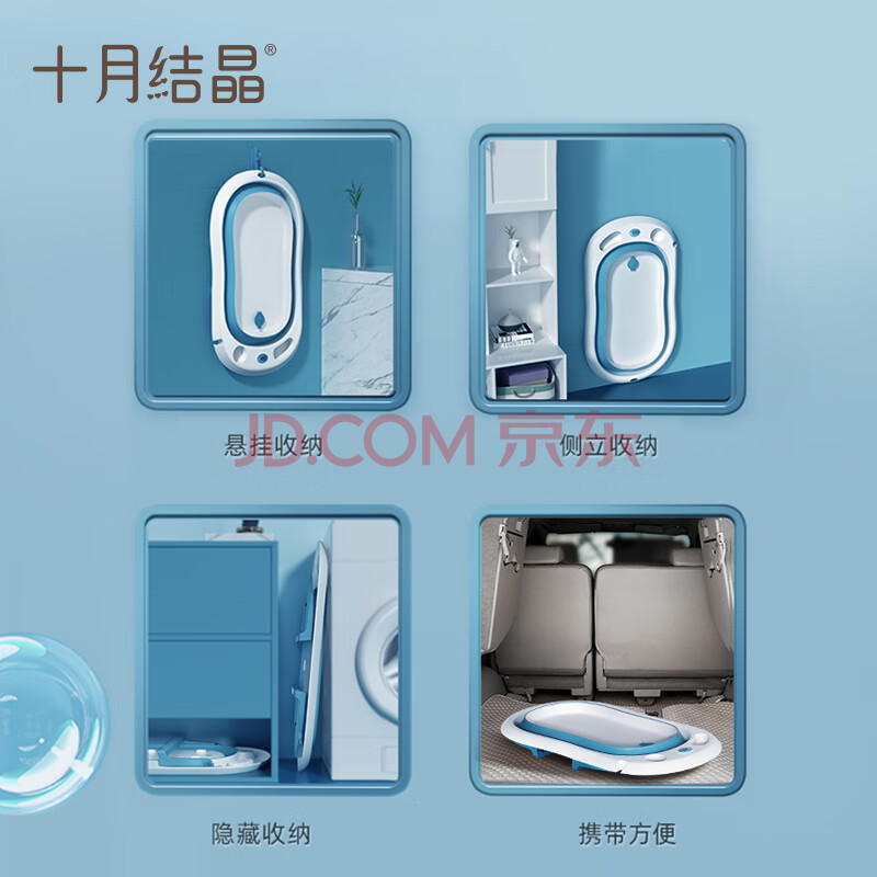 商品相册:十月结晶婴儿洗澡盆可坐可躺家用大号新生儿童用品可折叠宝宝浴盆格洛里蓝第1张/共4