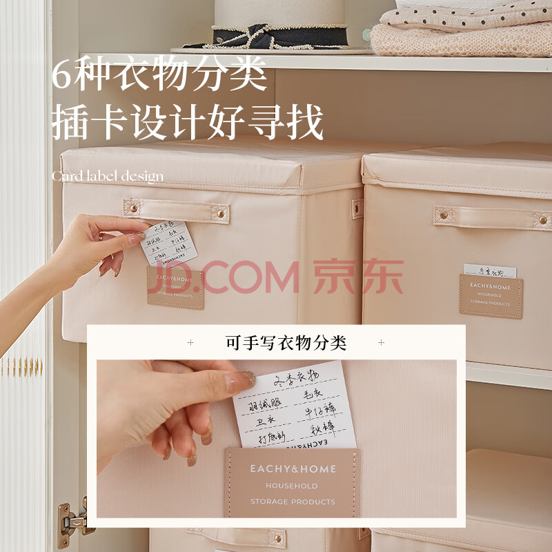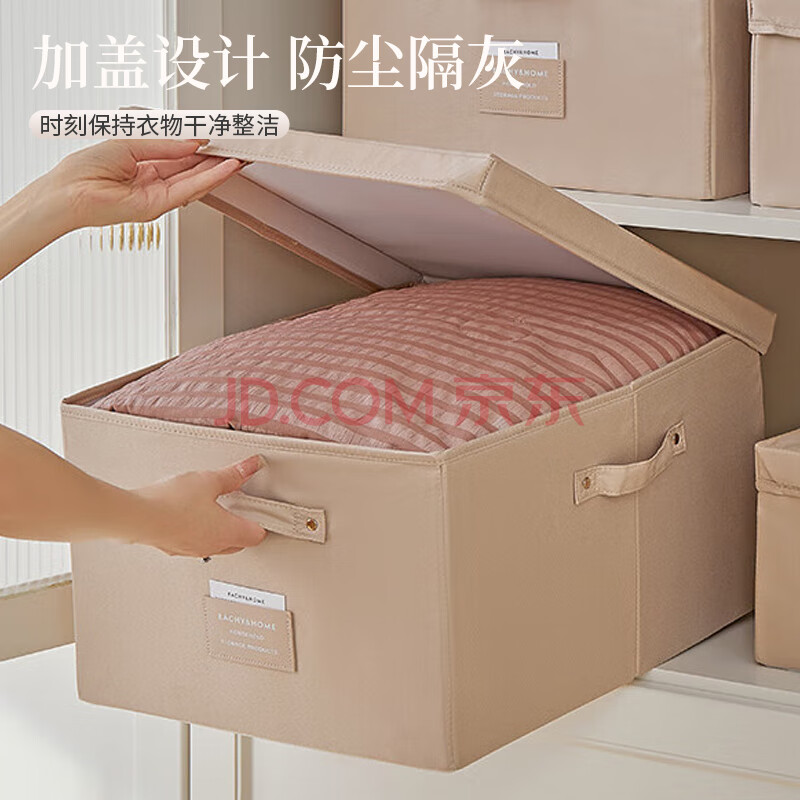 商品相册:EACHY衣服收纳箱布艺家用棉被衣物收纳箱可折叠衣柜整理收纳 60L杏仁粉第