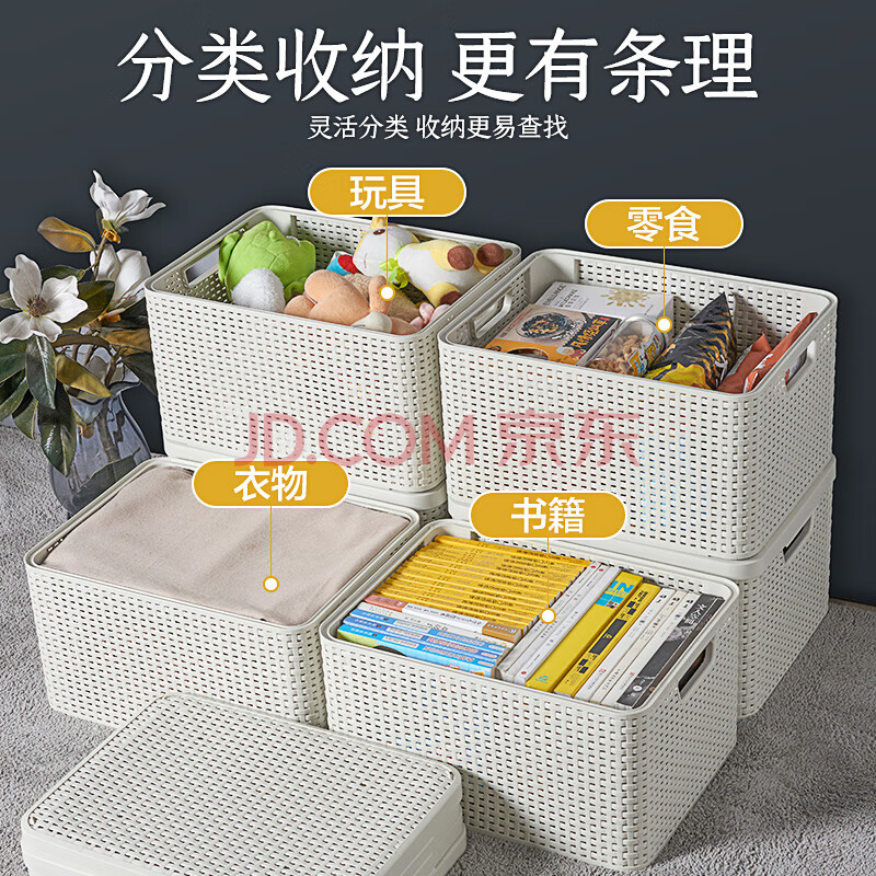 商品相册:JEKO&JEKO收纳篮衣服收纳筐脏衣篓仿藤编收纳箱整理箱储物箱收纳盒 乳白色第