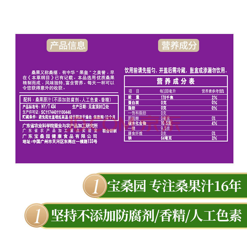 商品相册:宝桑园 桑果汁(100%原汁)468ml*24盒/箱第