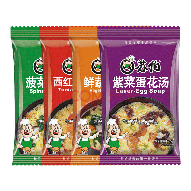 商品相册:苏伯 4口味240g全家福套餐蔬菜蛋花汤 FD冻干汤便携早餐代餐汤第