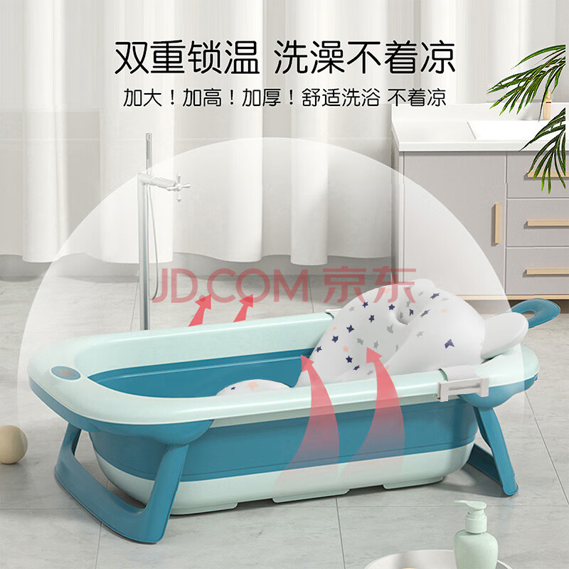 商品相册:英氏(YEEHOO)婴儿洗澡盆感温数显浴盆宝宝可折叠坐躺大号浴桶家用儿童套装粉色第