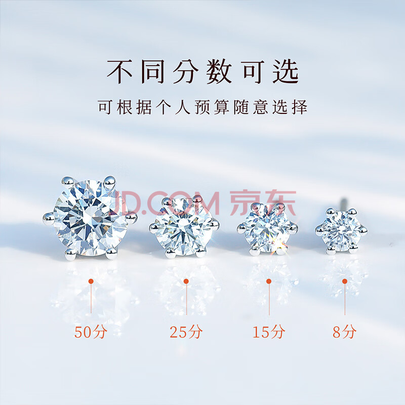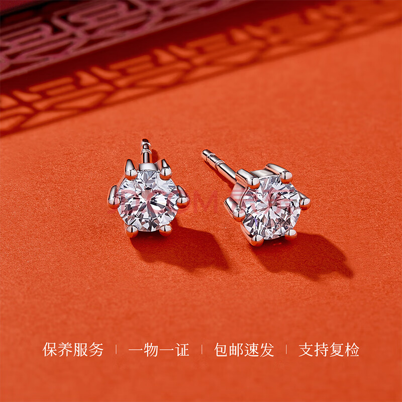 商品相册:喜钻生日礼物PT950铂金钻石耳钉六爪38分/对VS净度第