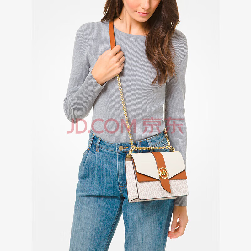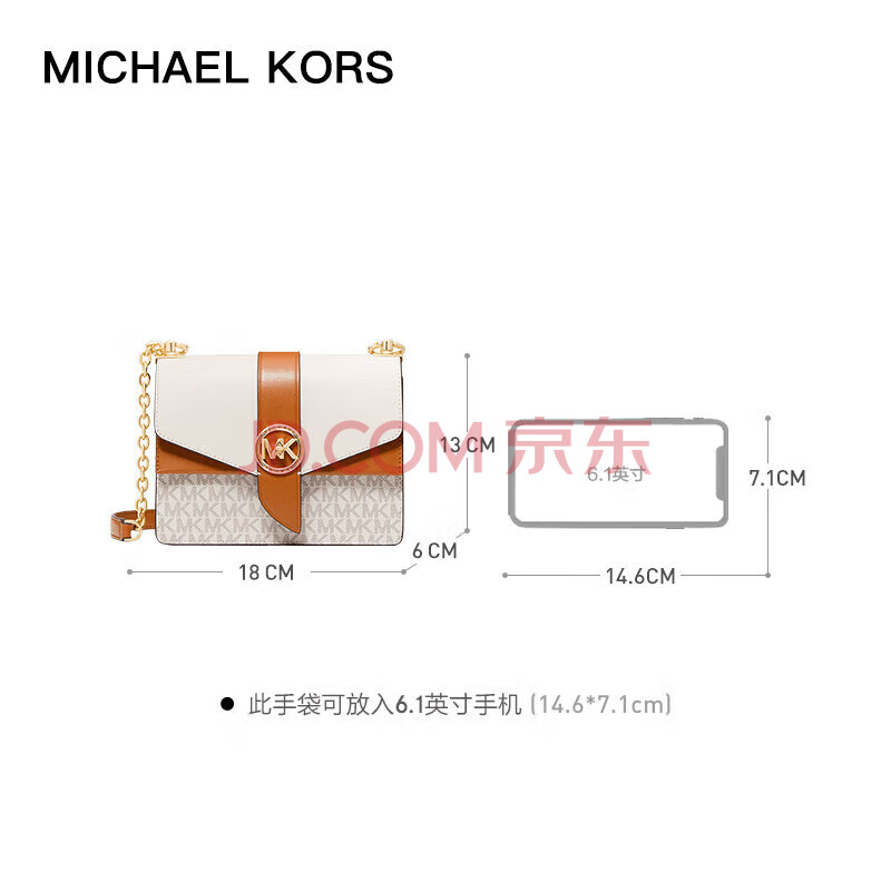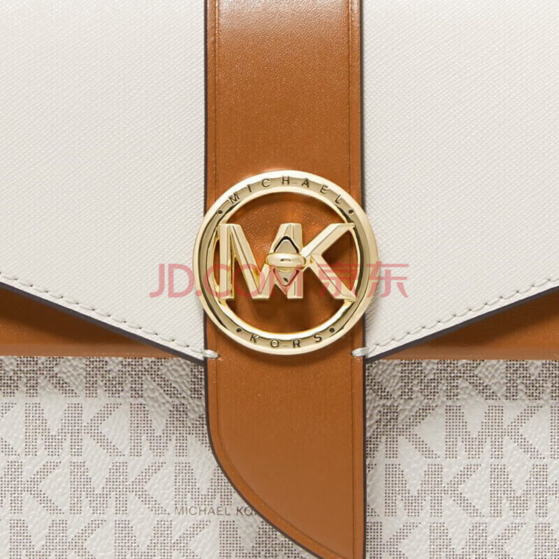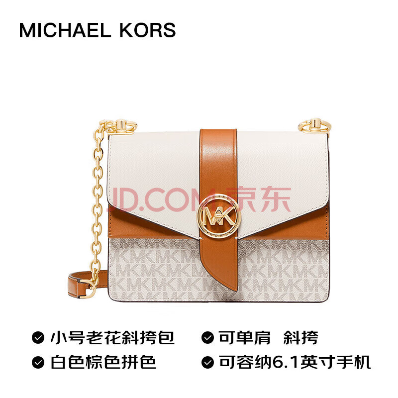 商品相册:MICHAEL KORS礼物奢侈品MK女士包包GREENWICH斜挎信封包 小号 白棕第