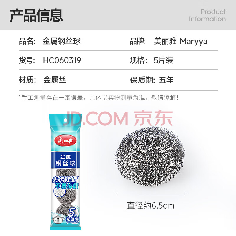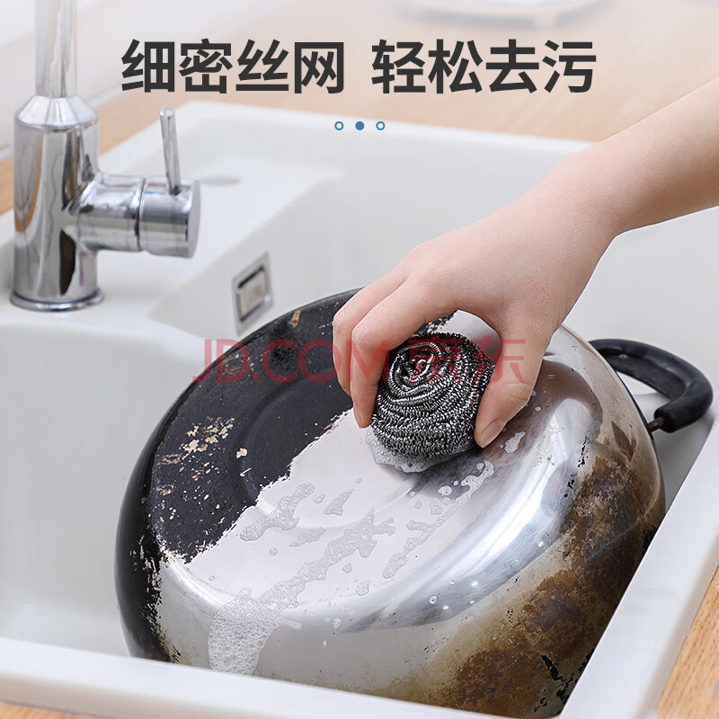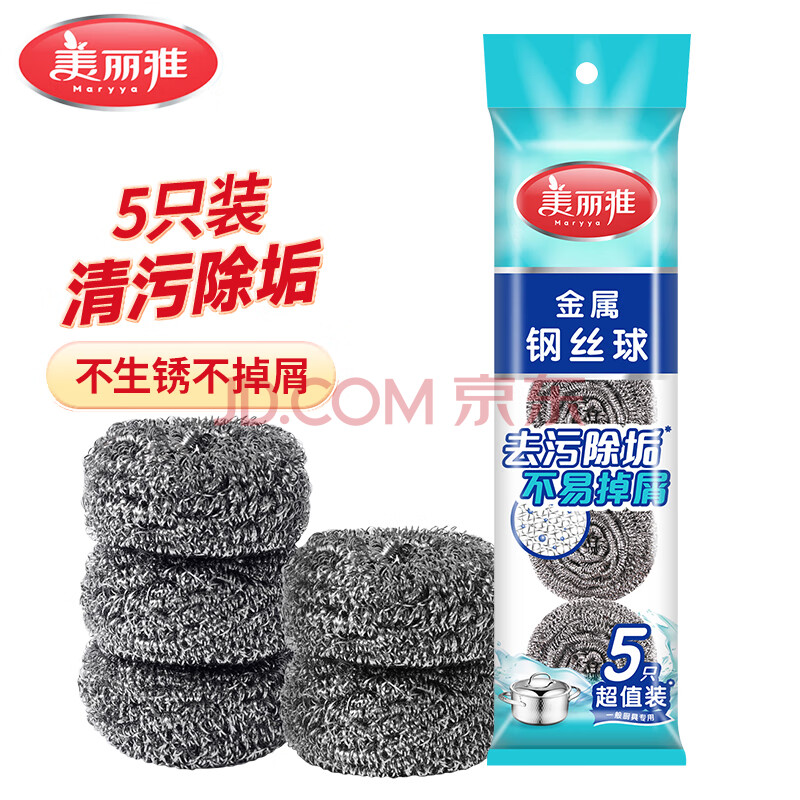 商品相册:美丽雅钢丝球5只清洁球厨房抹布高强度410不锈钢洗碗刷锅不易掉丝第