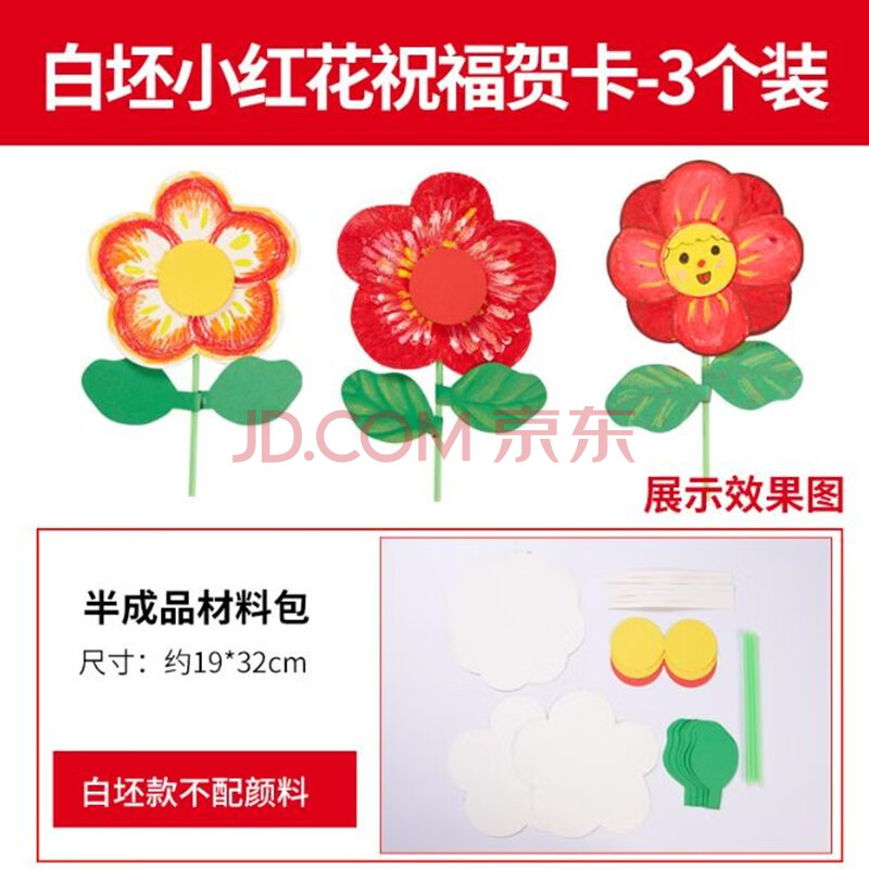 商品相册:乐童童 diy材料包母亲节贺卡妈妈礼物儿童玩具小红花手工(绘画款)3个/套 50套起拍第