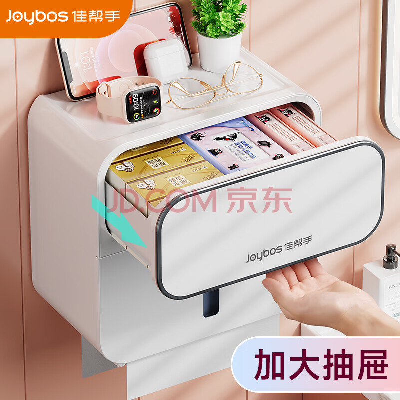 商品相册:佳帮手卫生间纸巾盒 免打孔厕纸盒壁挂厕所纸巾架浴室置物用品抽纸盒第