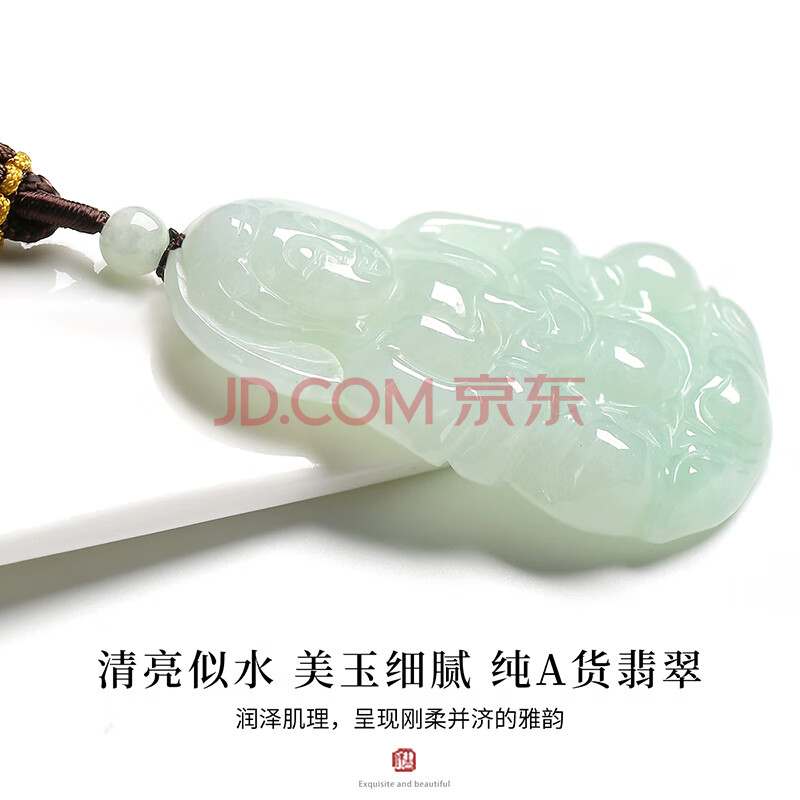 商品相册:凤禧珠宝 天然翡翠观音玉吊坠男士款玉石吊坠玉佩项链送男友生日礼物第