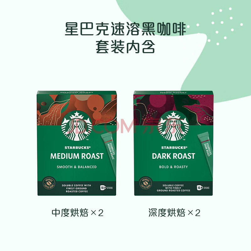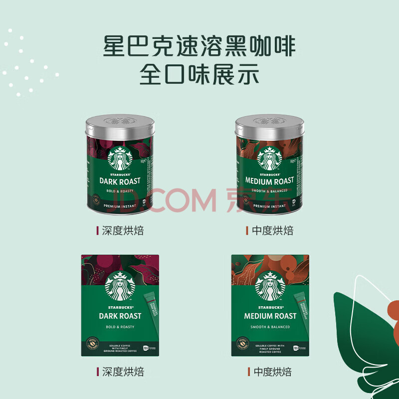 商品相册:星巴克速溶黑咖啡粉 0糖美式健身便携即冲 10条23g*4盒【中度+深度】第1张/共7