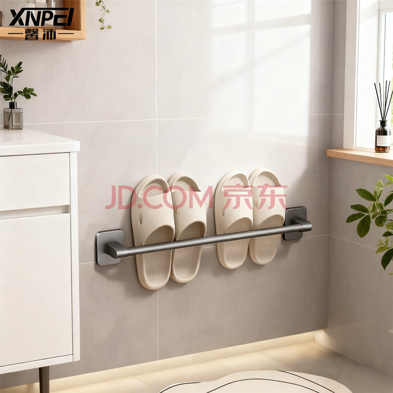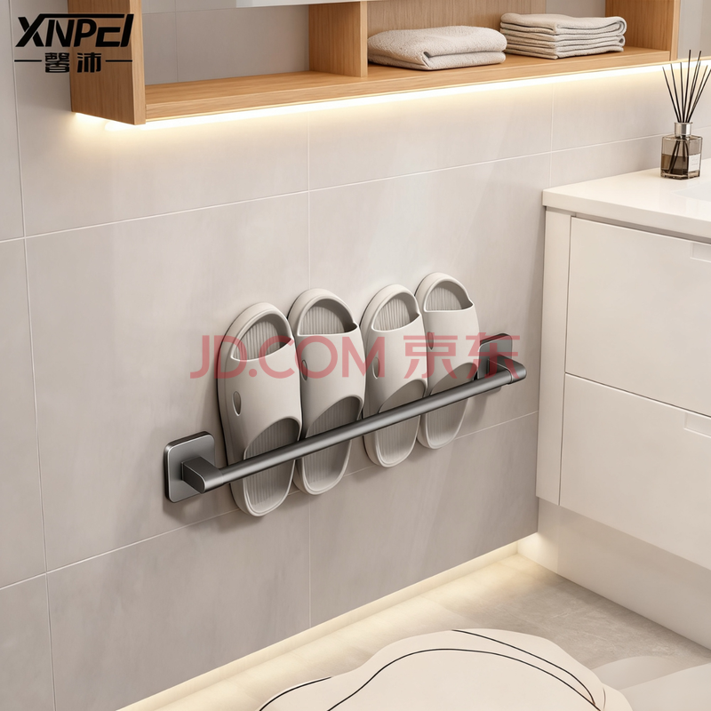 商品相册:馨沛浴室拖鞋架太空铝免打孔毛巾架卫生间置物架门后厕所壁挂收纳挂架第