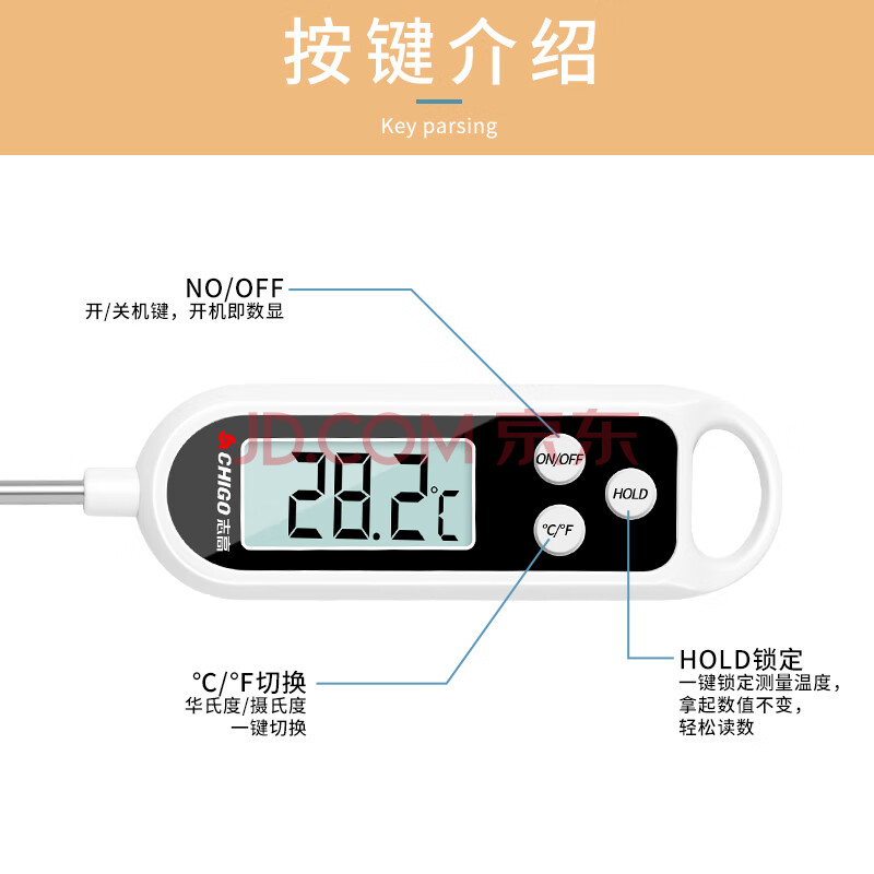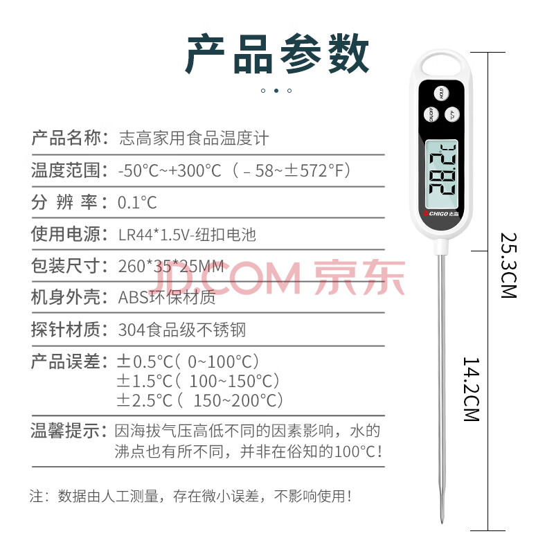 商品相册:志高(CHIGO)食品温度计家用商用烘焙测温计婴儿奶温度计洗澡水温计ZG-8020第1张/共3