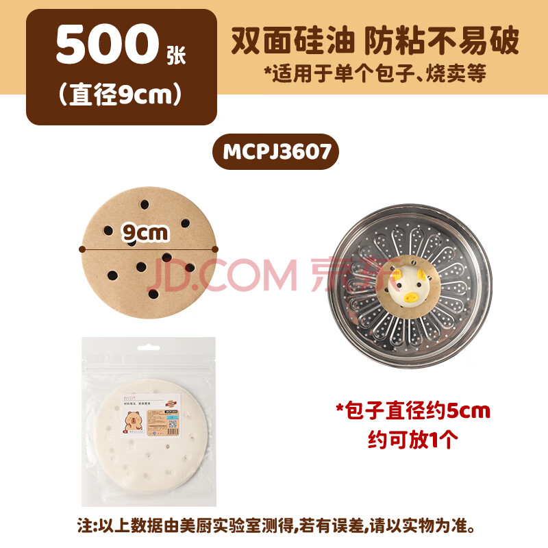 商品相册:美厨(maxcook)蒸笼纸包子垫蒸馒头纸不粘笼屉纸一次性500张 直径9cm MCPJ3607第