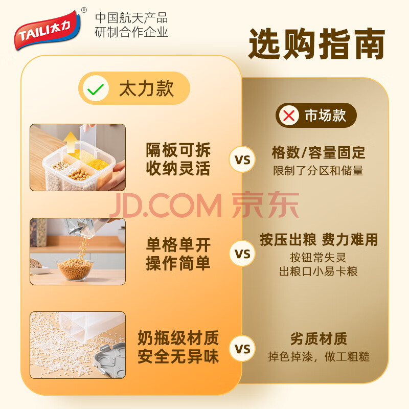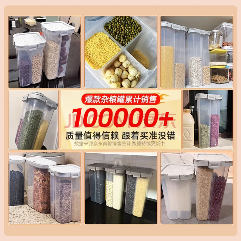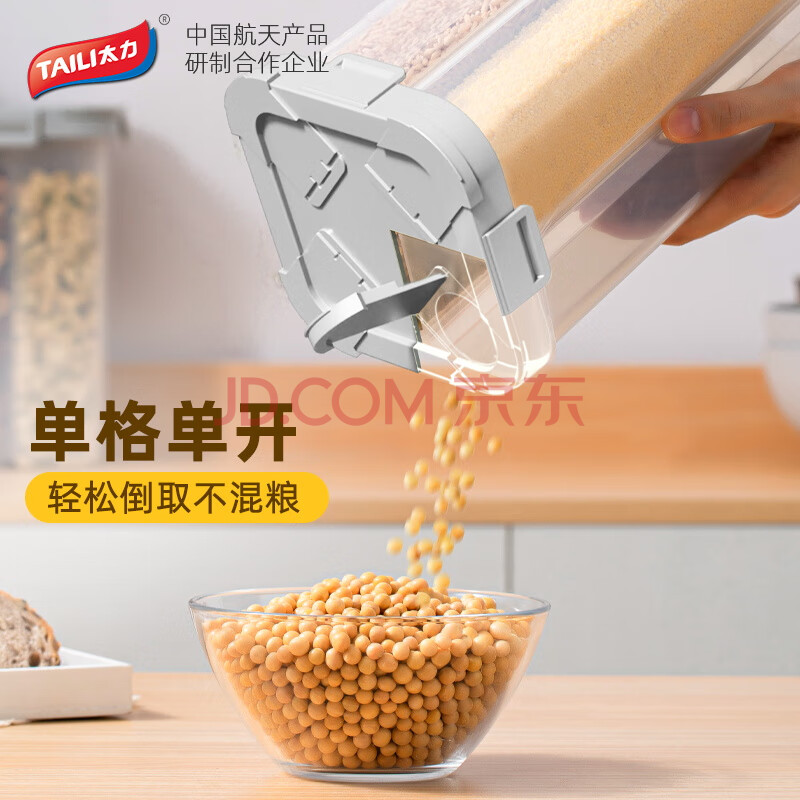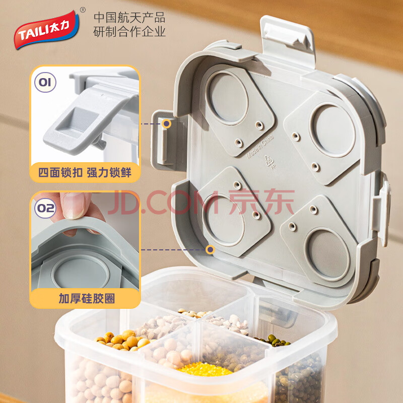 商品相册:太力 五谷杂粮收纳盒密封罐食品级杂粮米桶储物罐谷物豆子收纳四分格第