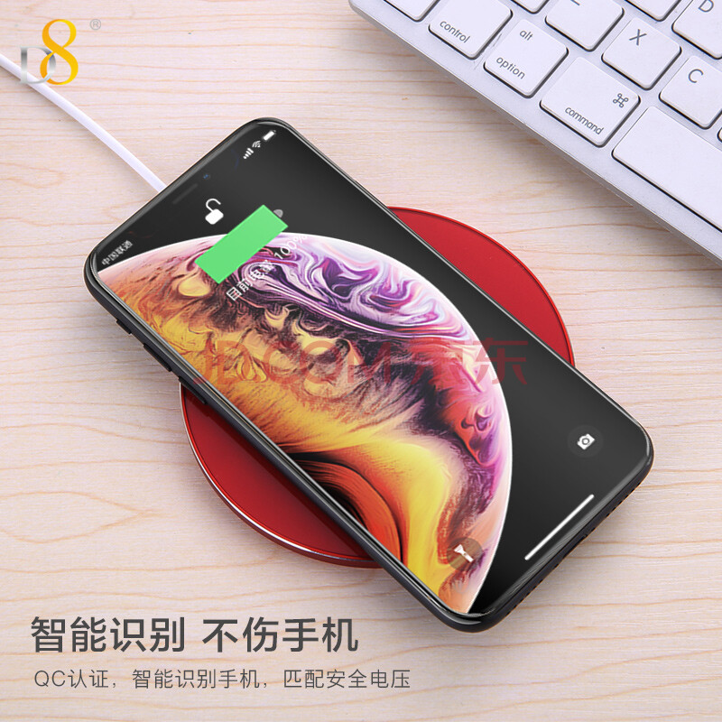 商品相册:D8 无线充电器7.5W快充通用苹果iPhone12/11/Xs Max/XR/SE2华为小米三星手机10W双模Qi无线快充头 红色第
