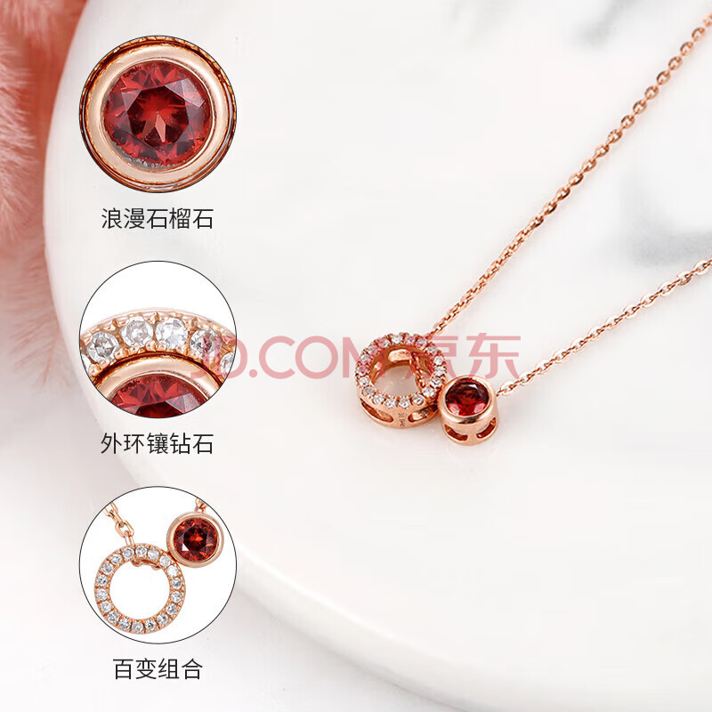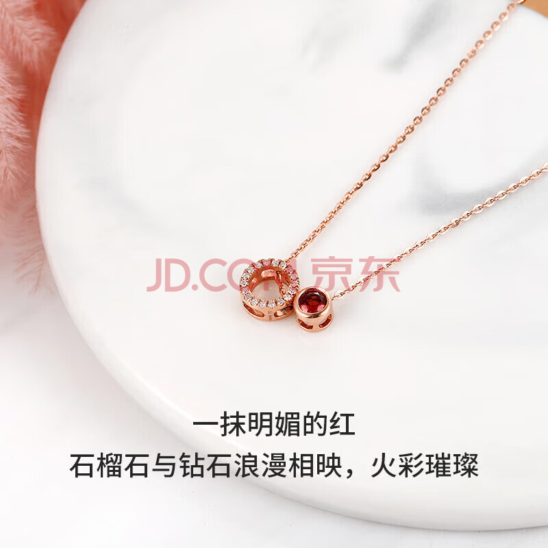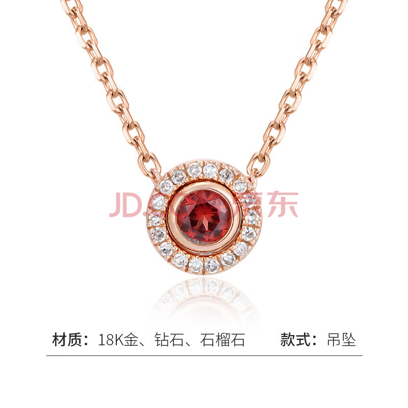 商品相册:千叶珠宝18K金钻石吊坠玫瑰金轻盈石榴石坠无链 需搭配针球链生日礼物第