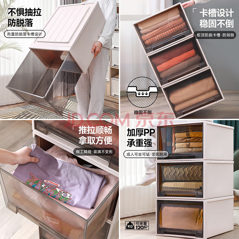 商品相册:百草园塑料收纳箱抽屉式储物收纳柜收纳盒内衣物衣服整理箱特大号3个装第