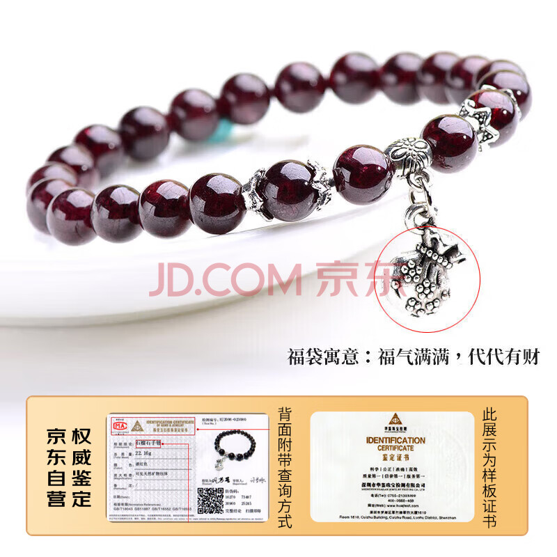 商品相册:石玥珠宝 石榴石手链转运珠天然手串男女士款礼物 水晶玛瑙 7-8mm 福袋 第1张/共4