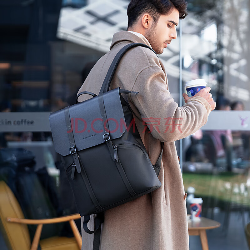 商品相册:马可·莱登欧美极简风双肩包大容量书包旅行包电脑包背包轻奢MR1622典雅黑第